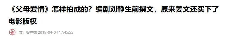 文汇报 2019-04-04——《父母爱情》怎样拍成的?编剧刘静生前撰文信弘配资,原来姜文还买下了电影版权